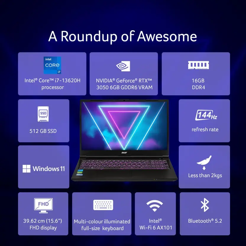 Acer NITRO LITE 16 Intel Core i5 13th Gen 13420H – (16 GB/512 GB SSD/Windows 11 Home/6 GB Graphics/NVIDIA GeForce RTX 3050) NL16-71G Gaming Laptop (16 Inch, Pure White, 1.95 Kg)